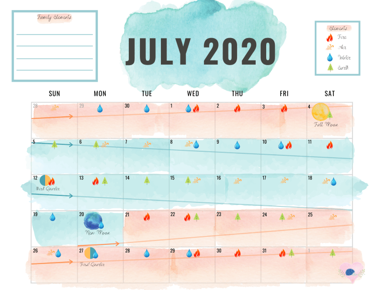 For me knowing when mine and my family’s energy is going to be lower or higher and if we need a little more down time (water) or more fun and movement (fire) helps us maintain more harmony in our lives.